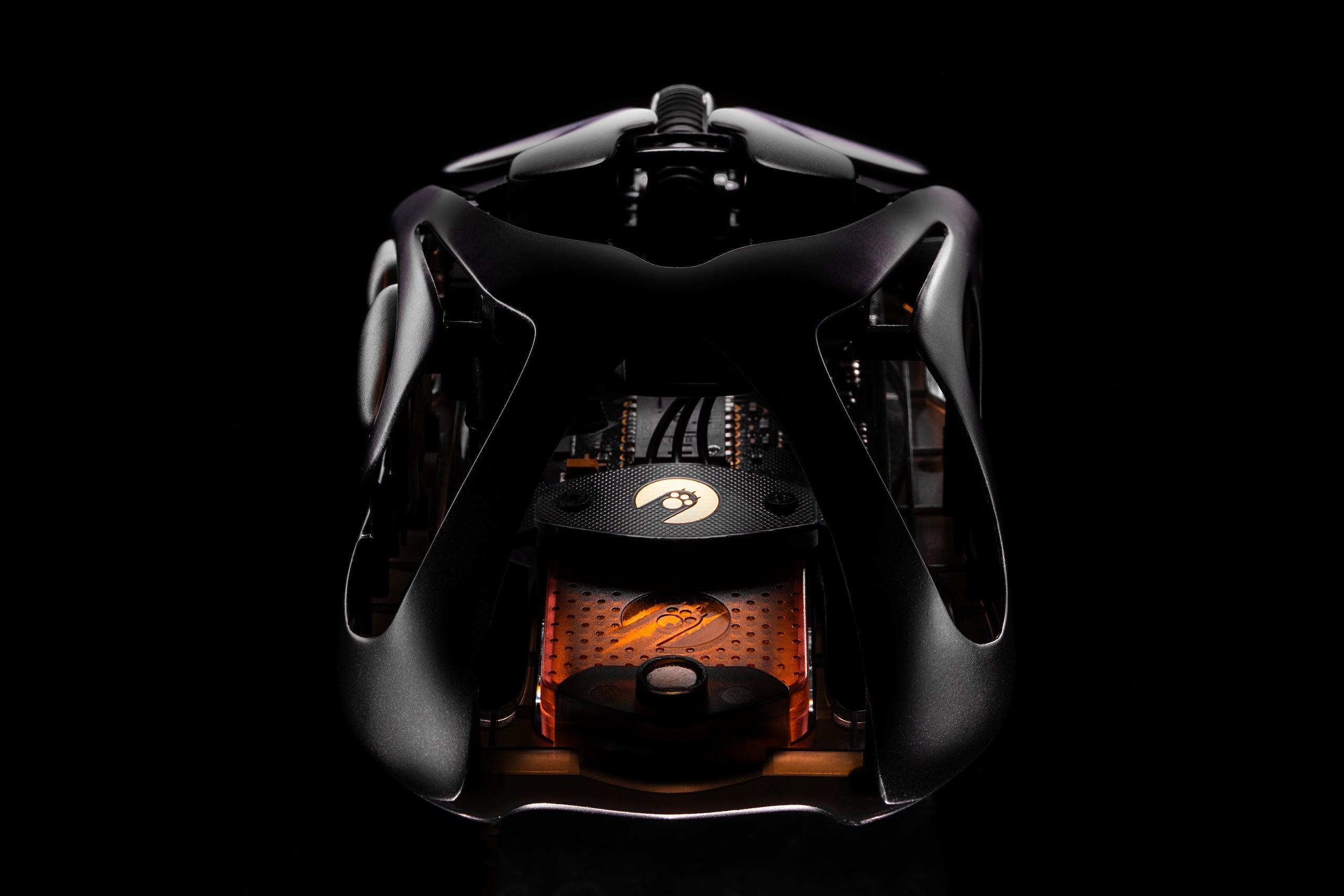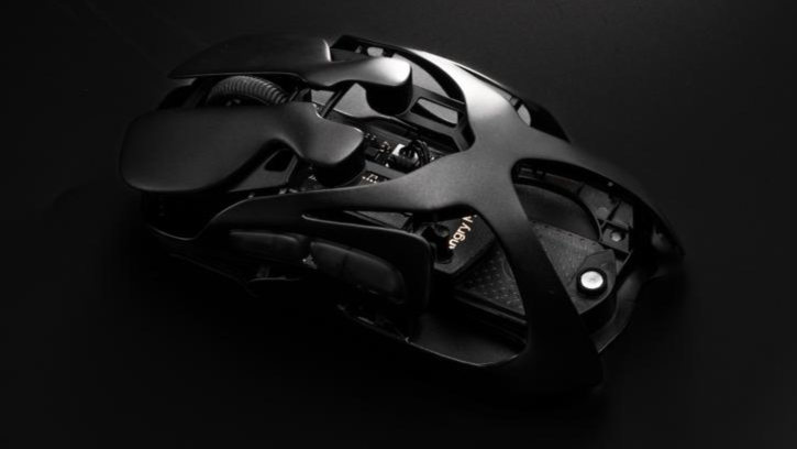 The Lotus Evanora Concept, designed by Maitreya Dhanak, forms the soul of the AM INFINITY MOUSE with its hollowed-out magnesium-aluminum alloy skeleton.
