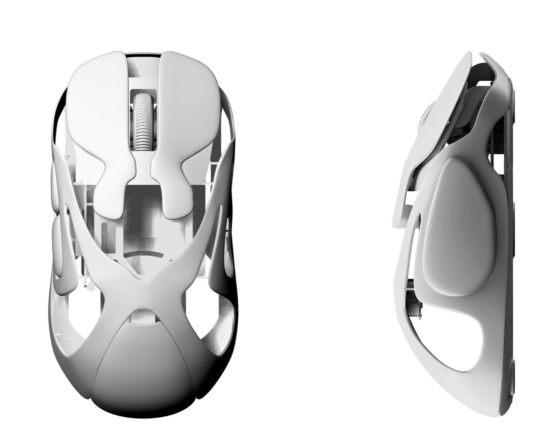In this process, we precisely identified the key contact areas when holding the mouse and hollowed out non-essential areas.