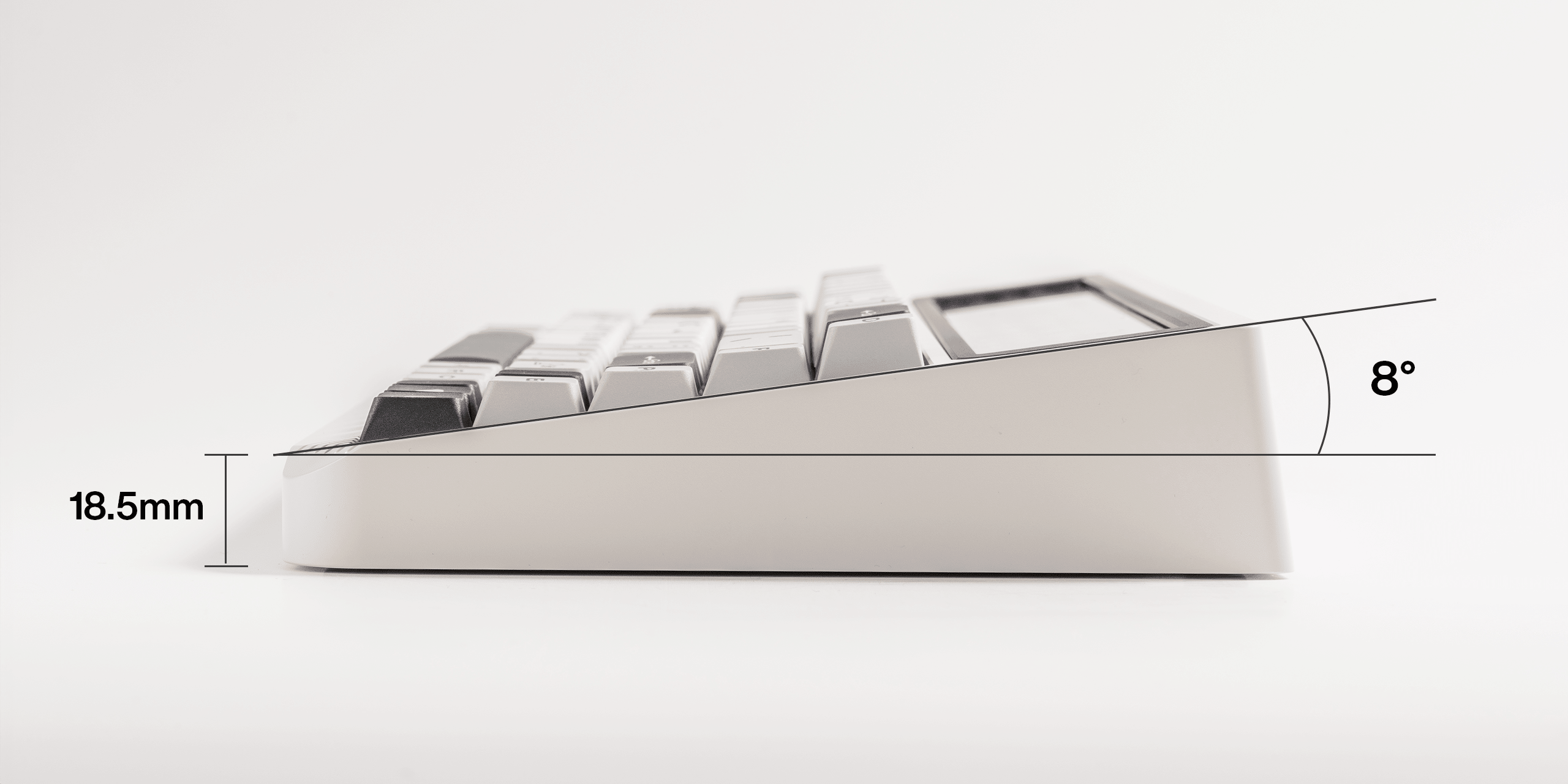 18.5mm Front Height and 8° Typing Angle for a Comfortable Experience