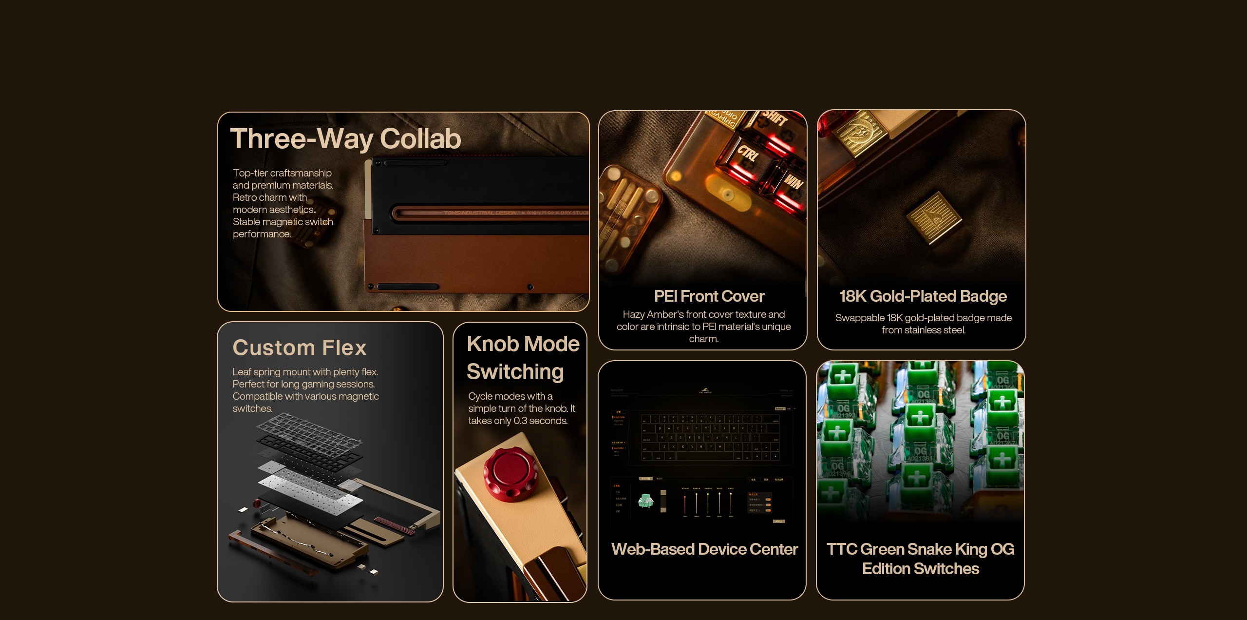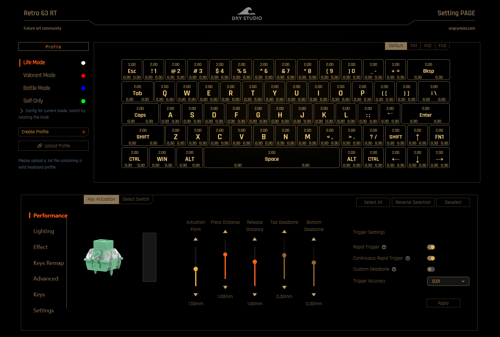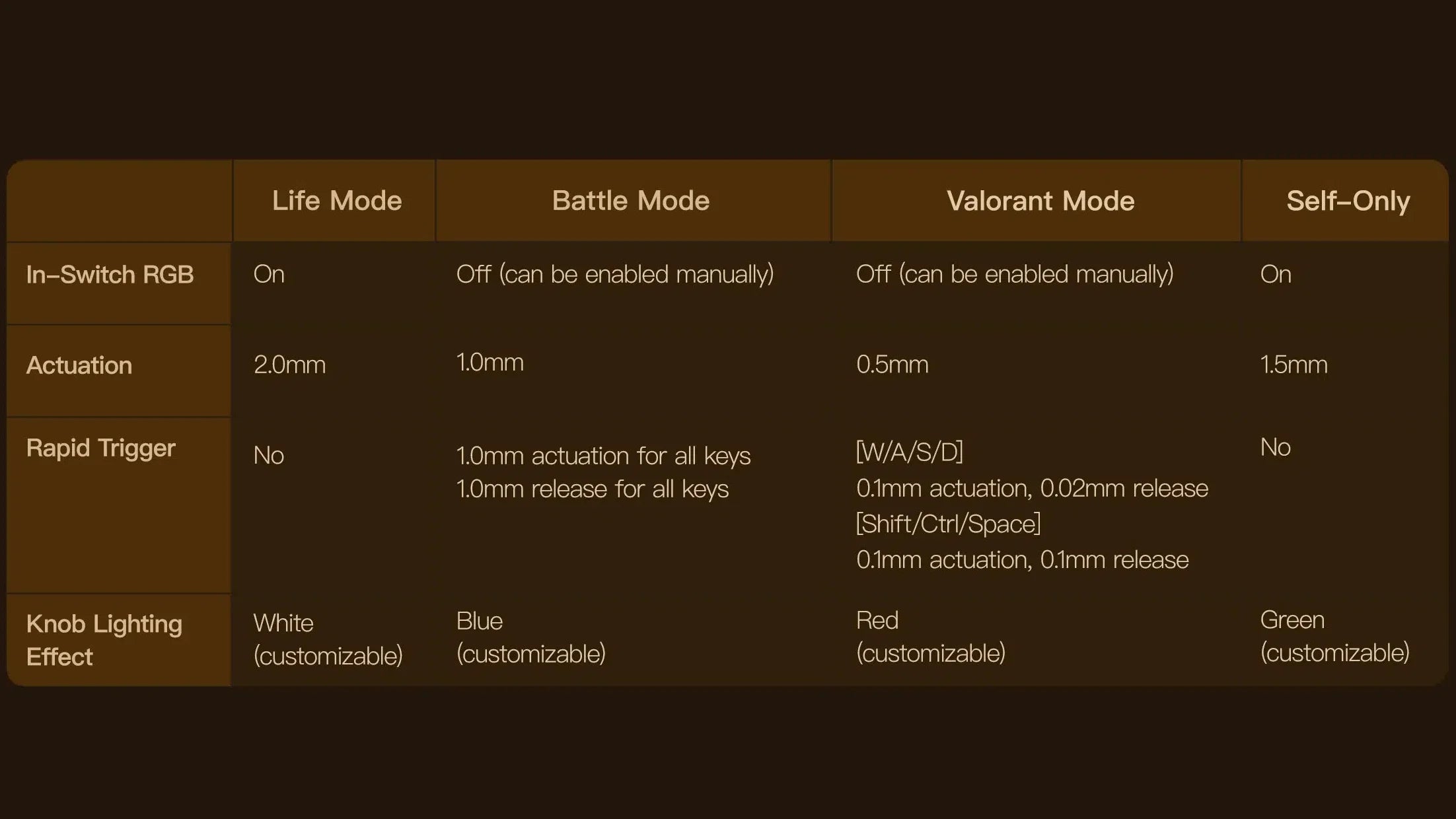 Custom Modes / Rapid Trigger / Custom Lighting Effects / Custom Layers / Deadzone Adjustment / Debounce / Key Calibration