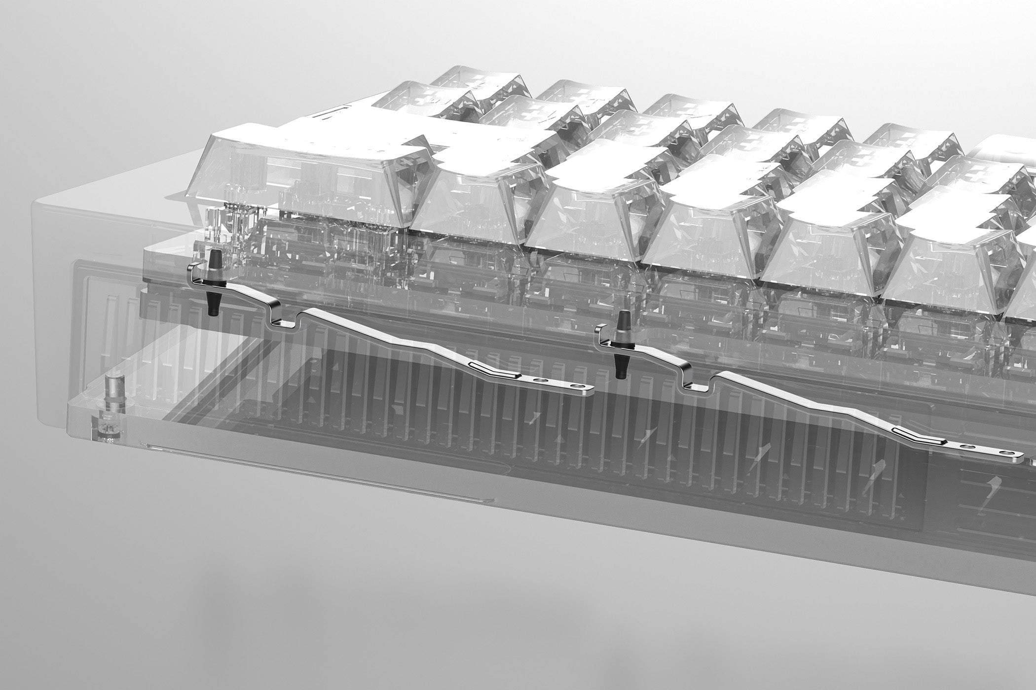 The leaf spring mount delivers smooth flex beneath your fingertips, turning every keypress into a pleasurable experience.