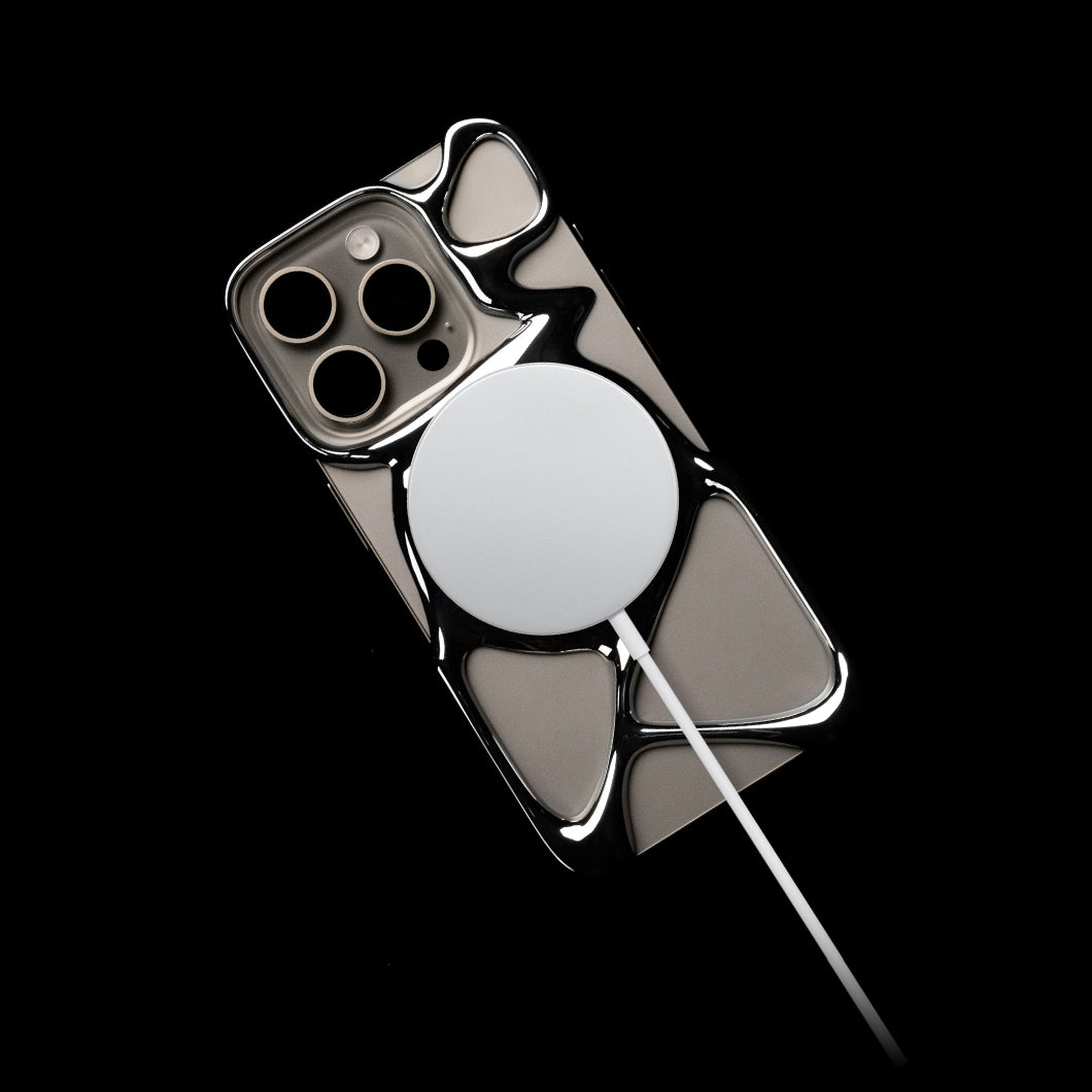 Magnets are built-in into the phone case, ensuring support for official and most third-party MagSafe chargers. All this while keeping weight at a minimum. Form and function. The AM Emptiness Phone Case offers both.