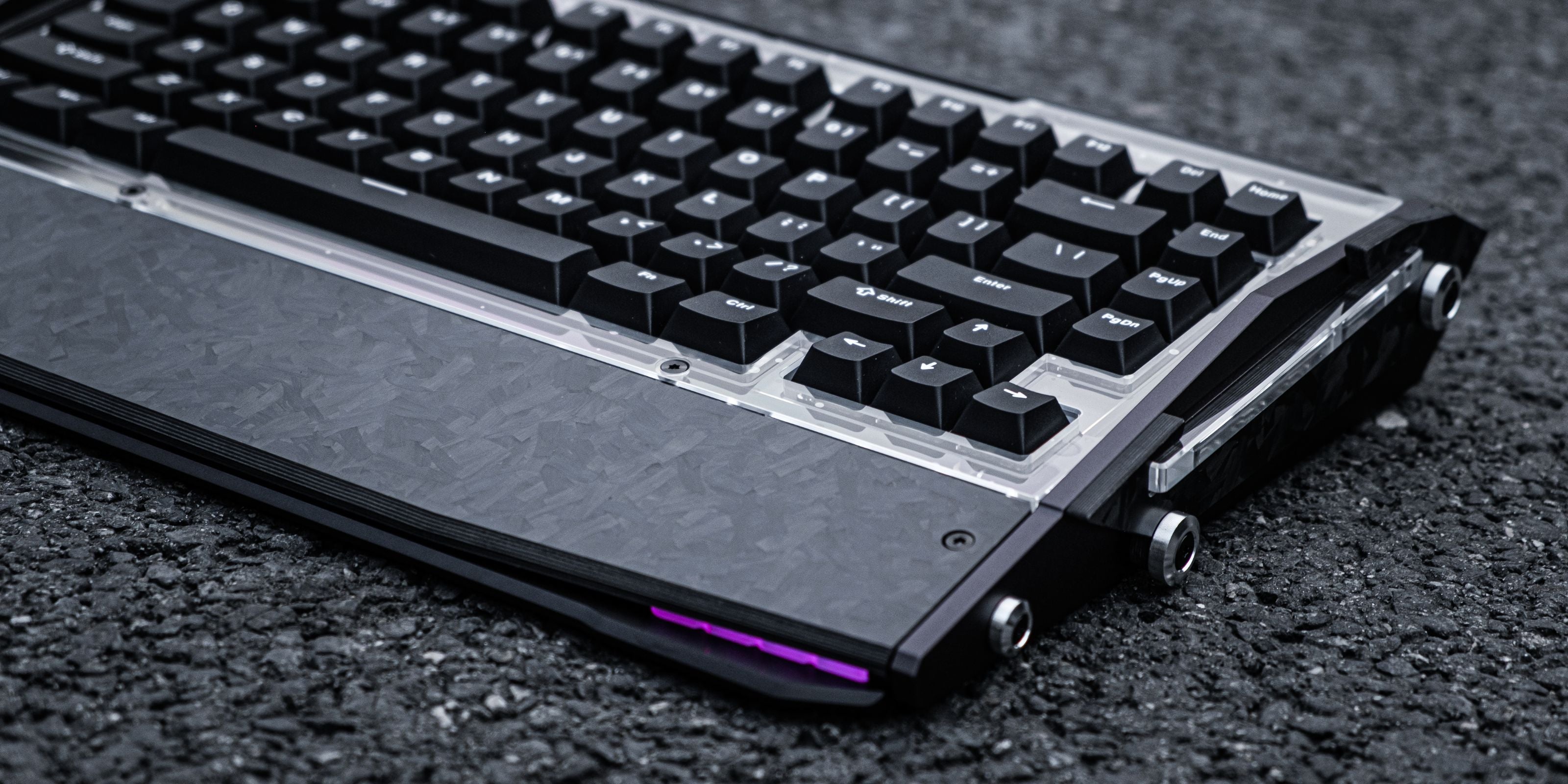 Sturdy forged carbon wrist rest and keyboard body parts. Embodying Black Diamond 75 V2 as a high-performance gaming keyboard.